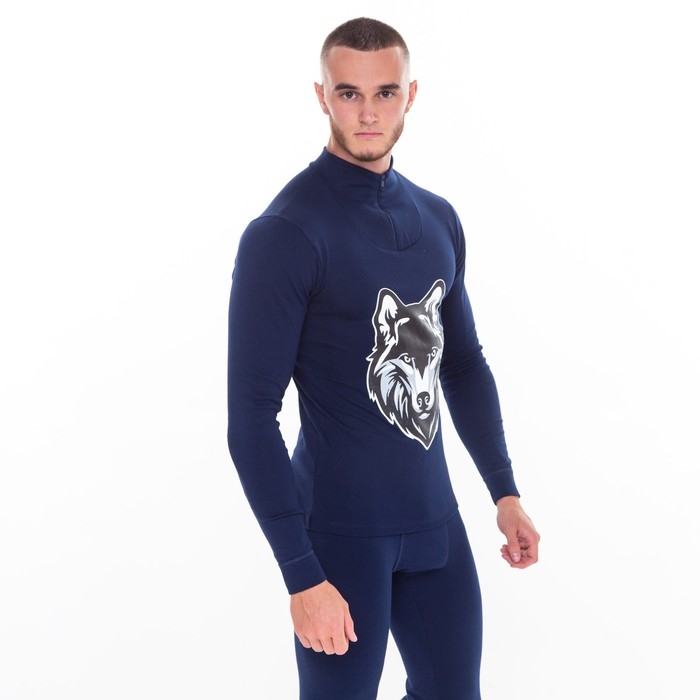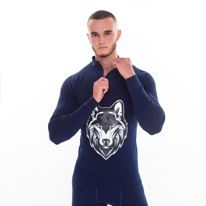 Термобельё мужское НАЧЁС (фуфайка, кальсоны) принт волк, цвет тёмно-синий, размер 52
