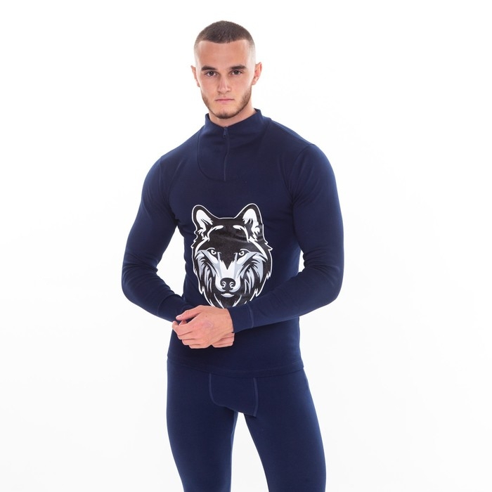 Термобельё мужское НАЧЁС (фуфайка, кальсоны) принт волк, цвет тёмно-синий, размер 56