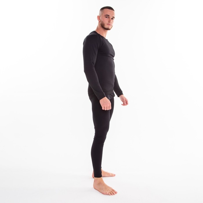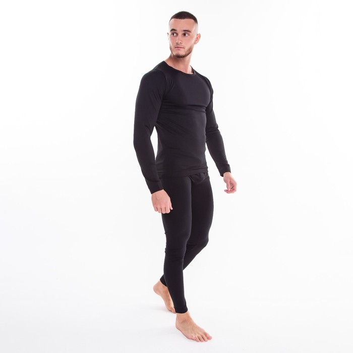 Термобельё мужское НАЧЁС (лонгслив, кальсоны), цвет чёрный, размер 54-56