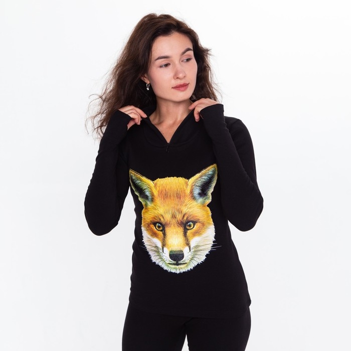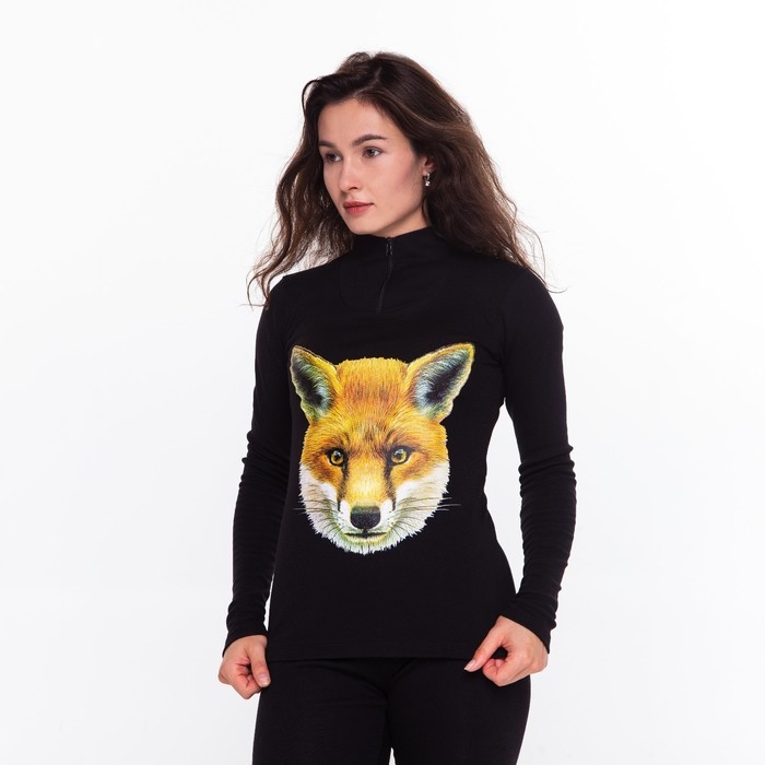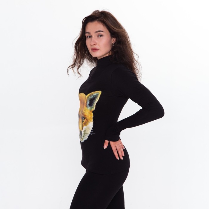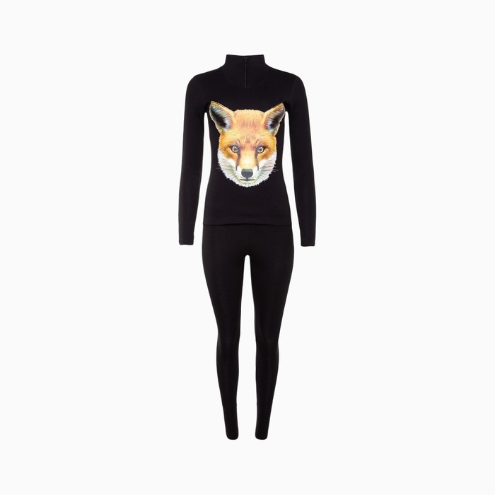 Термобельё женское (джемпер, леггинсы) принт лиса, цвет чёрный, размер 48