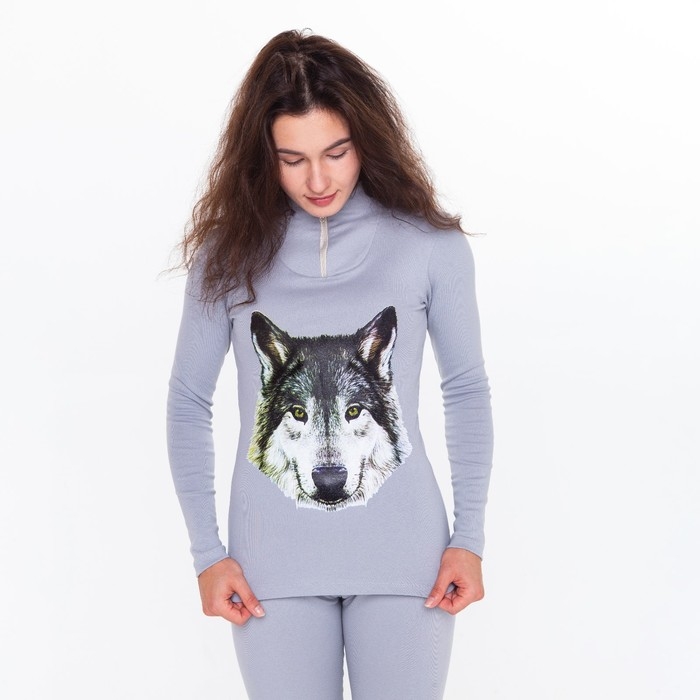 Термобельё женское (джемпер, леггинсы) принт волк, цвет светло-серый, размер 52