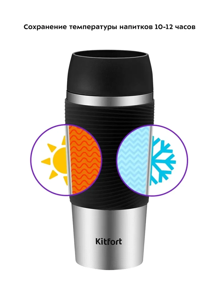 Термокружка Kitfort КТ-1224 - идеальный вариант для переноски горячих и холодных напитков. Благодаря клапану для питья в крышке делает употребление напитков удобным и комфортным. Главное достоинство термокружки Китфорт КТ-1224 - поддержание температуры содержимого 10-12 часов. Металлическая термокружка надежнее и прочнее пластиковых термокружек. Время сохранения тепла зависит от конструкции корпуса термокружки. Лучше всего сохраняют тепло модели с двойными стенками и вакуумной полостью, как в модели КТ-1224. Также двойные стенки уберегают ваши руки от горячей поверхности. Такая конструкция обеспечивает высокую температуру напитка внутри, но комфортную температуру корпуса термокружки снаружи. В КТ-1224 навинчивающаяся крышка с силиконовым уплотнительным кольцом. Такая конструкция защищает от протеканий. Термокружка КТ-1224 станет незаменимой вещью в длительных поездках, в походах, прогулках и в повседневной жизни.