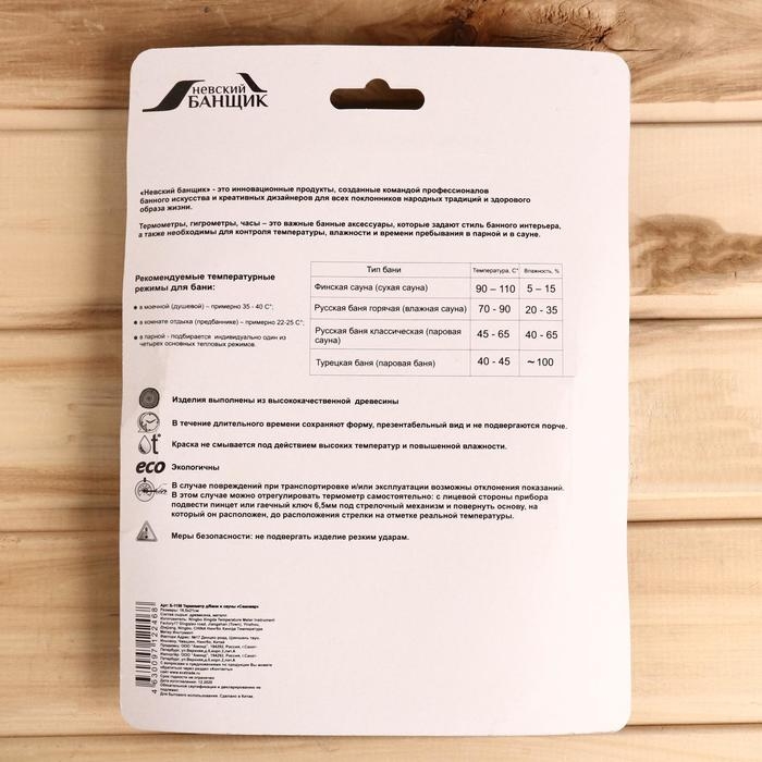 Термометр-гигрометр для бани, деревянный
