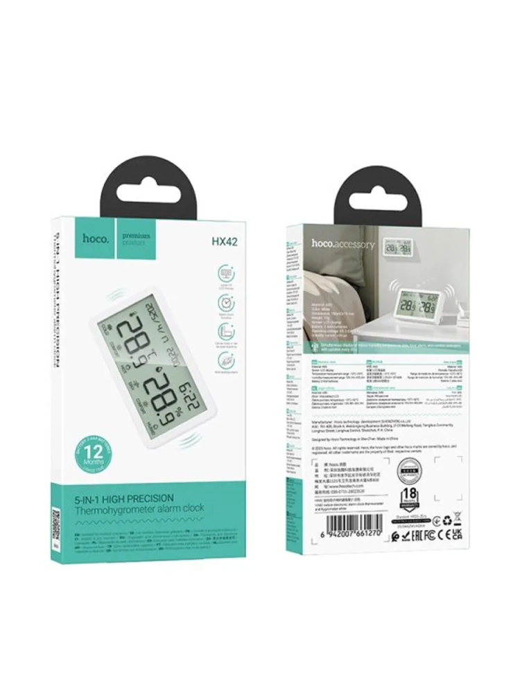 С размером всего 106х60х19 мм и весом 70 г, HX42 легко впишется в любой интерьер. ЖК-дисплей обеспечивает четкое отображение актуальных данных о температуре и влажности, что делает его идеальным решением для использования в комнате, на кухне или в теплице. Удобный индикатор позволяет следить за изменениями каждые 30 секунд, что особенно важно для тех, кто заботится о здоровье и уюте своей семьи.