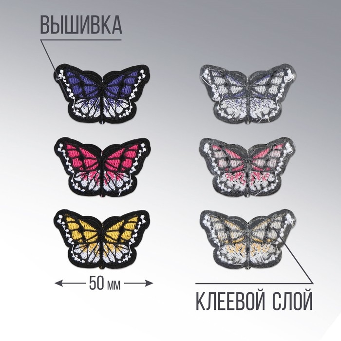 Термонаклейки на одежду «Бабочки», 3 шт.