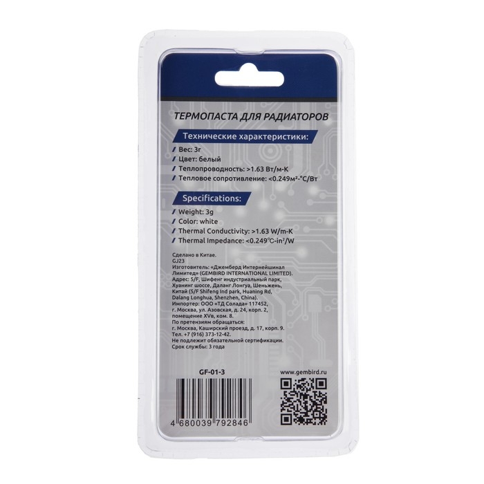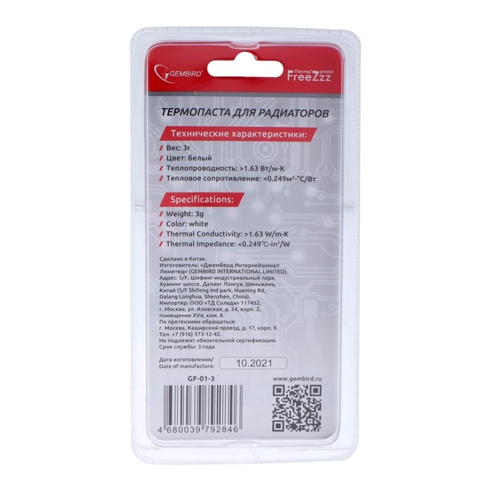Термопаста Gembird FreeZzz GF-01-3, 3 гр, шприц