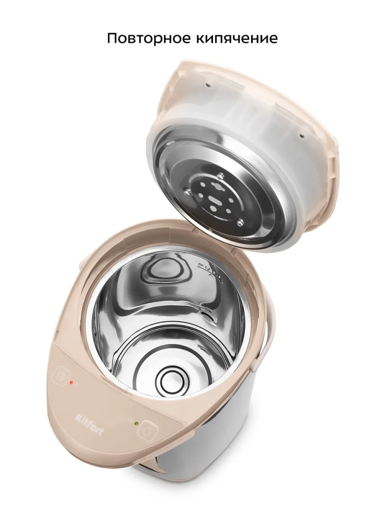 Термопот Kitfort КТ-2529 служит для кипячения и поддержания температуры воды с помощью периодического включения и отключения нагрева. Отличие термопота от обычного чайника состоит в том, что термопот поддерживает температуру воды, поэтому у вас всегда есть горячая вода.