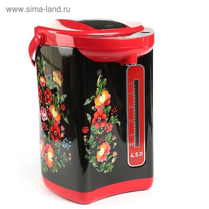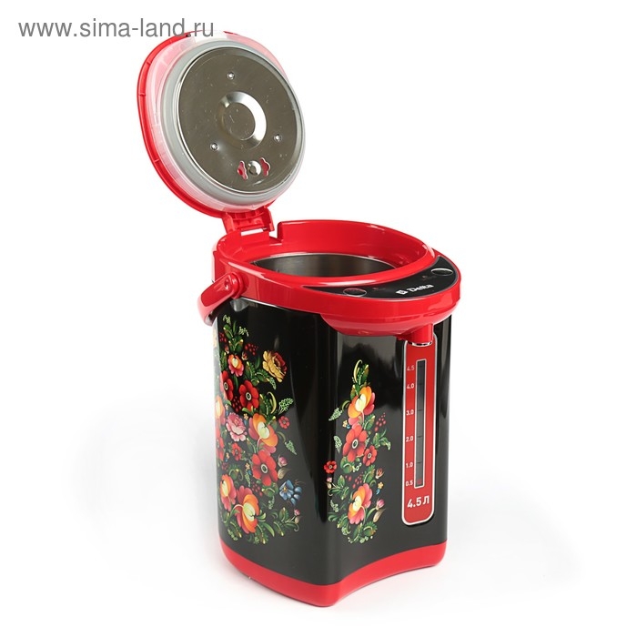 Термопот DЕLTA DL-3034, 4.5 л, 750 Вт, чёрно-красный с рисунком "Хохлома"
