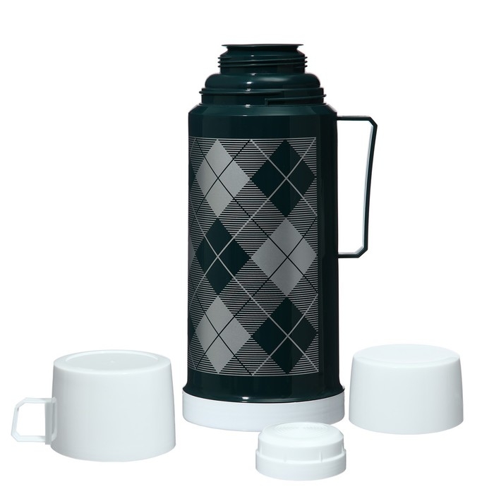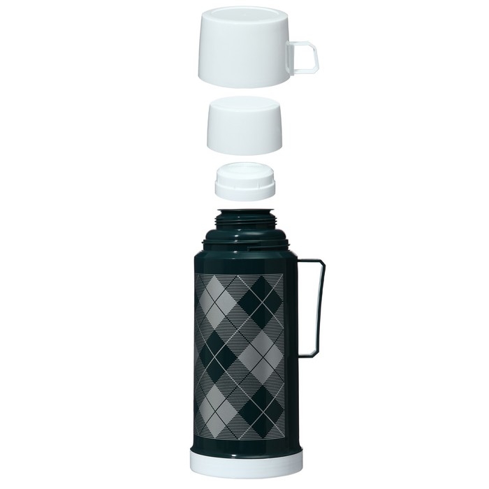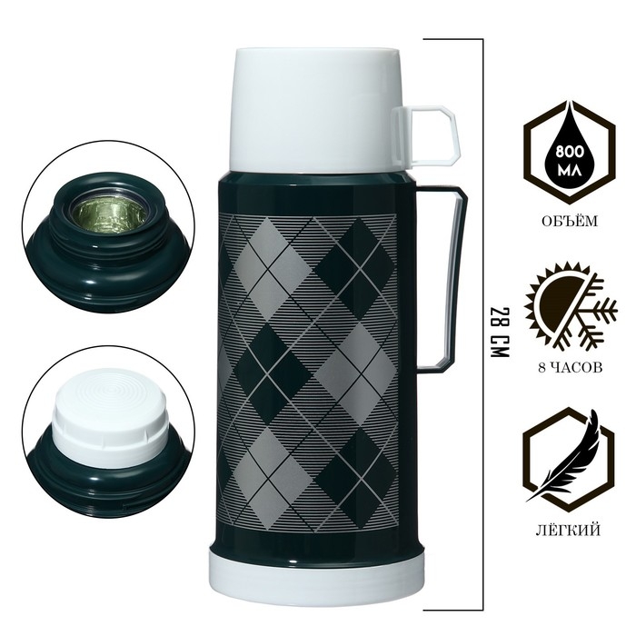 Термос 1 л, со стеклянной колбой, сохраняет тепло 8 ч, 12 х 28 см, зеленый