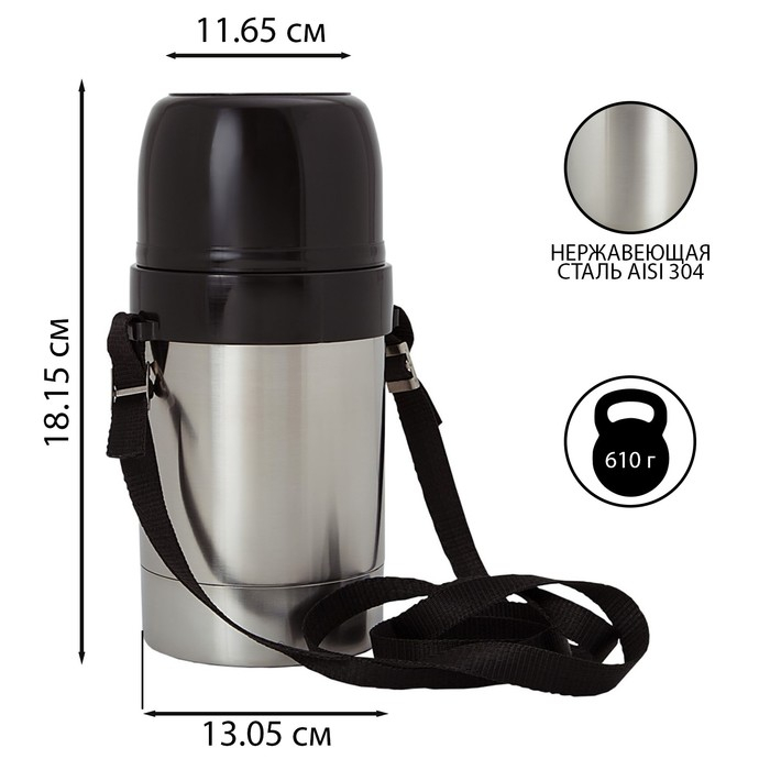 Термос "Амет. Дорожный" 1с666, с широким горлом, 0.5 л, 60 °С, 6 ч, на ремне