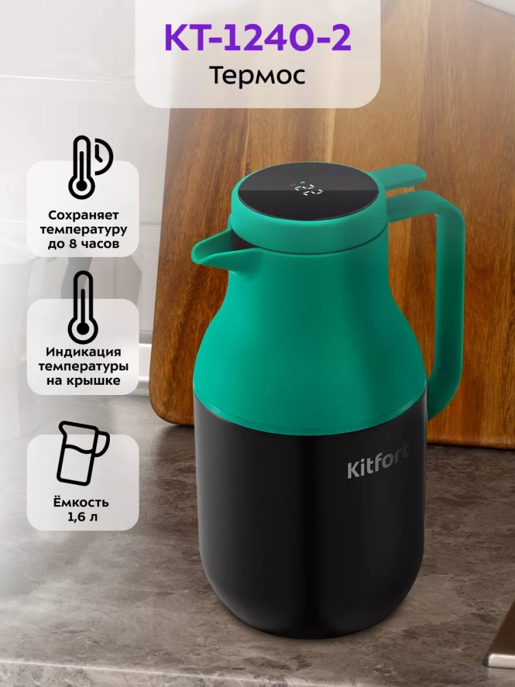 Термос Kitfort КТ-1240 — идеальный вариант для переноски горячих и холодных напитков. Термос может сохранять температуру содержимого 8 часов.