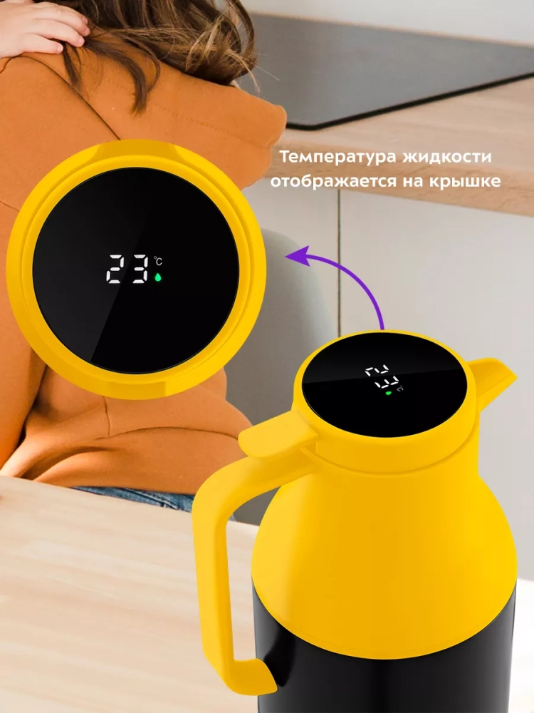Главной особенностью термоса является индикация температуры на крышке термоса: