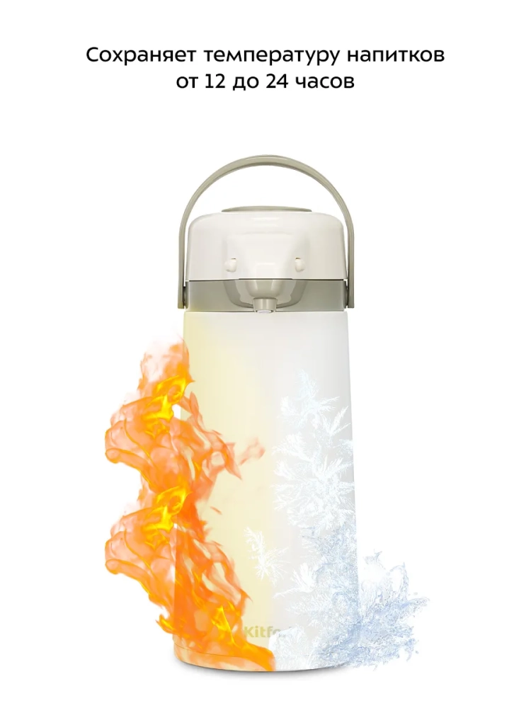 В термосе Kitfort КТ-1260 можно хранить как горячие, так и холодные напитки. Изделие сохраняет температуру содержимого в течение 12–24 часов.