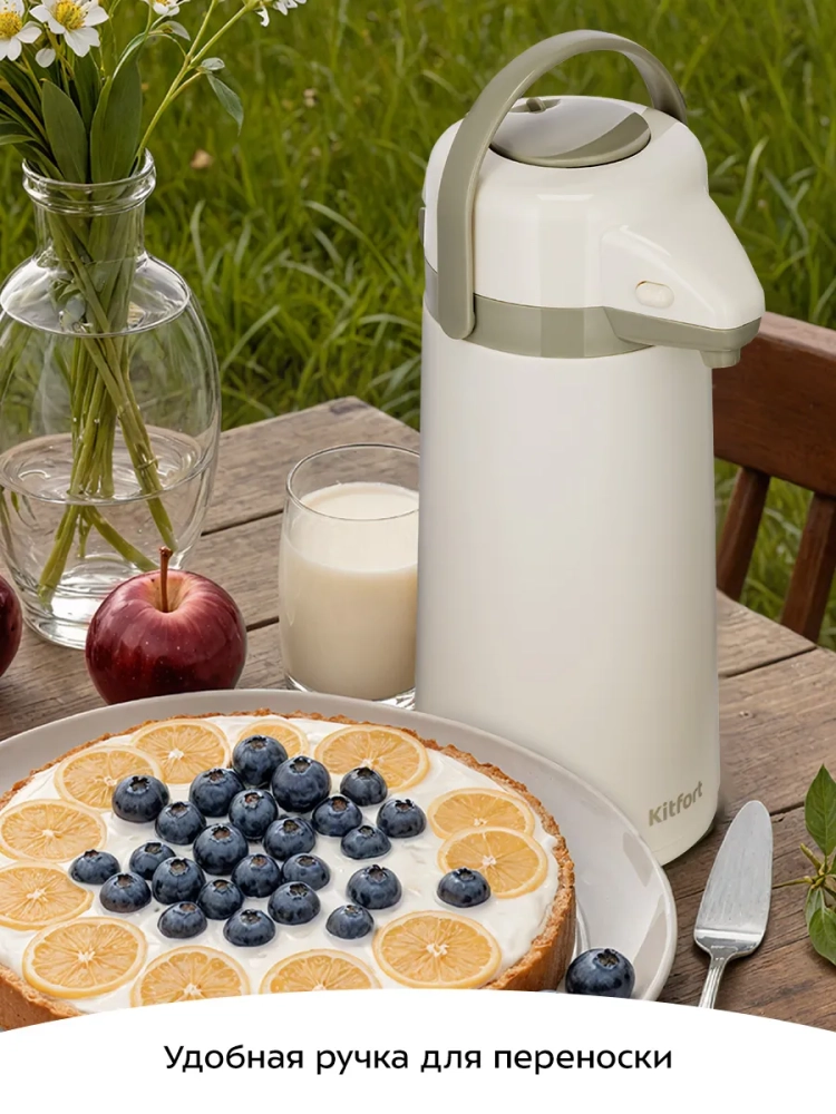 У изделия есть удобная ручка для переноски. При необходимости вы можете повернуть носик, не поднимая термос: на дне корпуса предусмотрен поворотный механизм. Данная модель предназначена для стационарного использования. Она будет незаменима во время отдыха на свежем воздухе, а также на кухне в офисе, квартире или на даче.