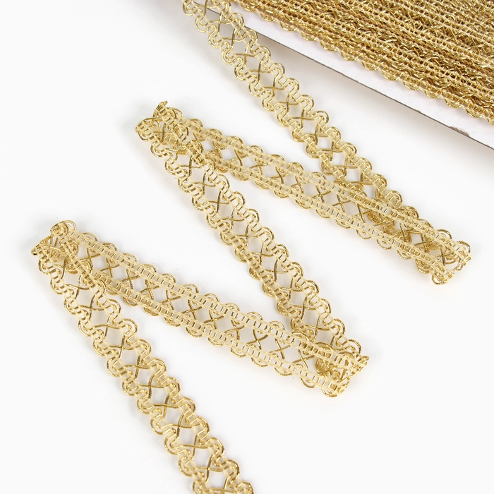 Тесьма «Ажурная» золотая, ширина 1,5 см, намотка 25 метров