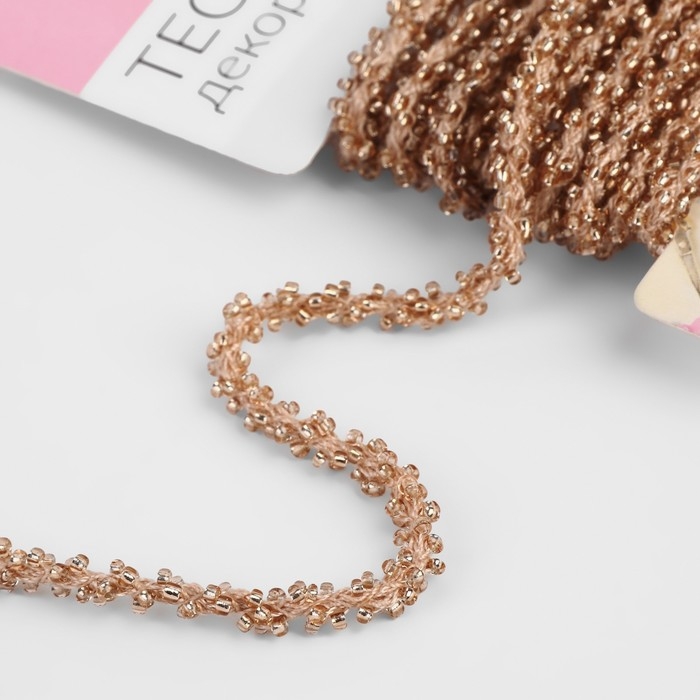 Тесьма декоративная с бисером, 6 мм, 2,7 ± 0,5 м, цвет светло-кофейный