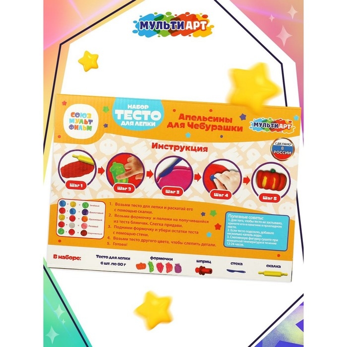 Тесто для лепки и формочки «Апельсины для Чебурашки», 6 цв. теста по 60 гр