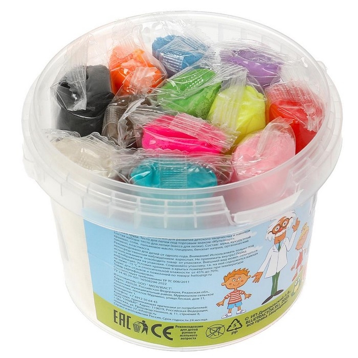 - В комплекте 12 баночек с тестом ярких цветов.