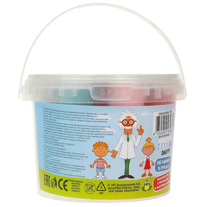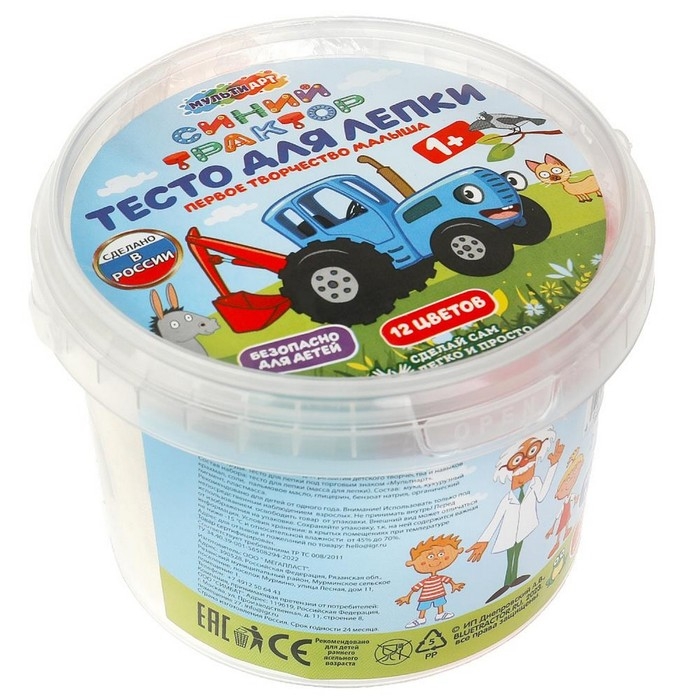 Тесто для лепки в ведре «Синий трактор», 12 цв.