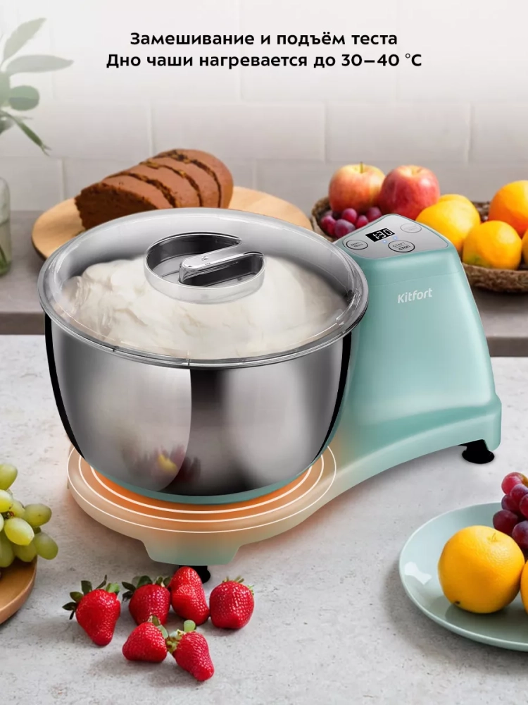 Тестомесильная машина Kitfort КТ-3498 поможет вам замесить крутое тесто для пельменей и пирогов, слоеное тесто для булочек, а также жидкое тесто для блинов.