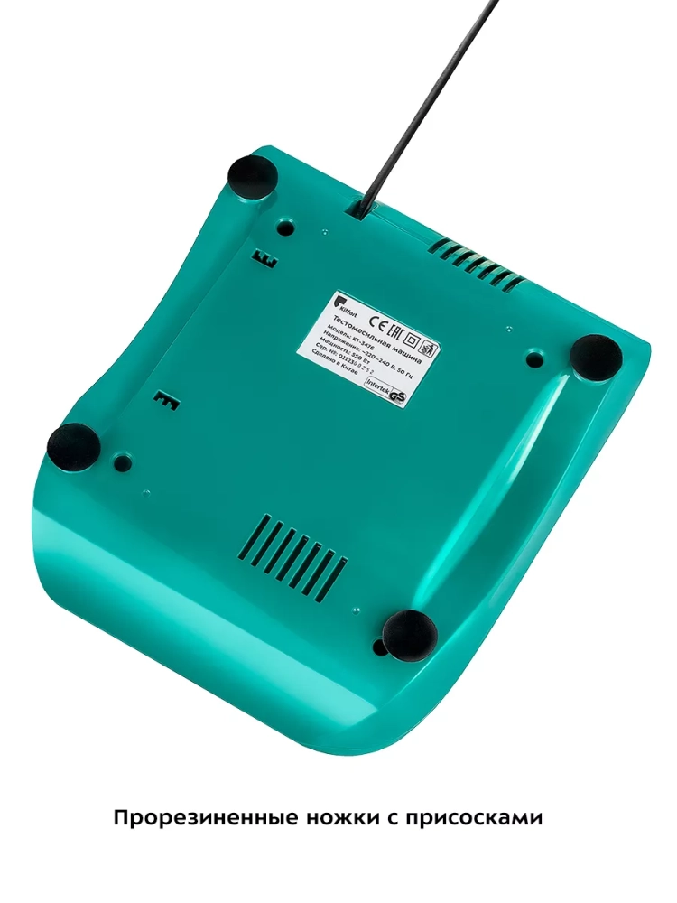 Во время работы насадка для замешивания теста вращается вокруг своей оси. Это обеспечивает идеальное качество смешивания без комков. Надежный двигатель позволяет быстро и эффективно смешивать ингредиенты для теста. Прорезиненные ножки с присосками прочно фиксируют прибор на столе.