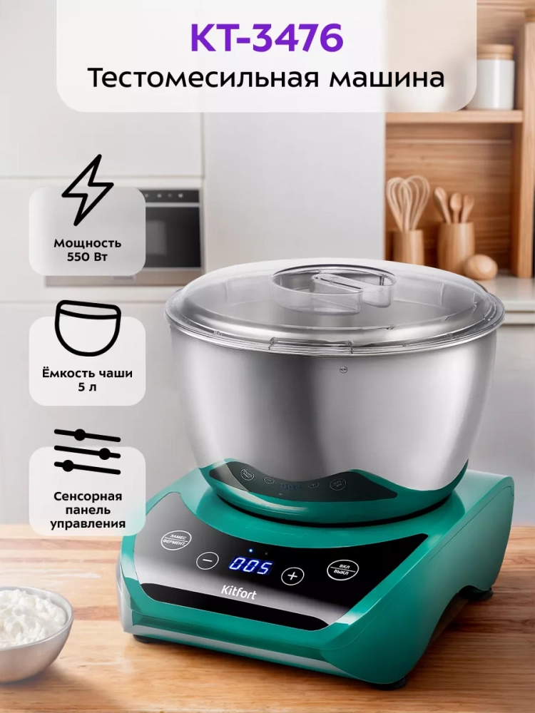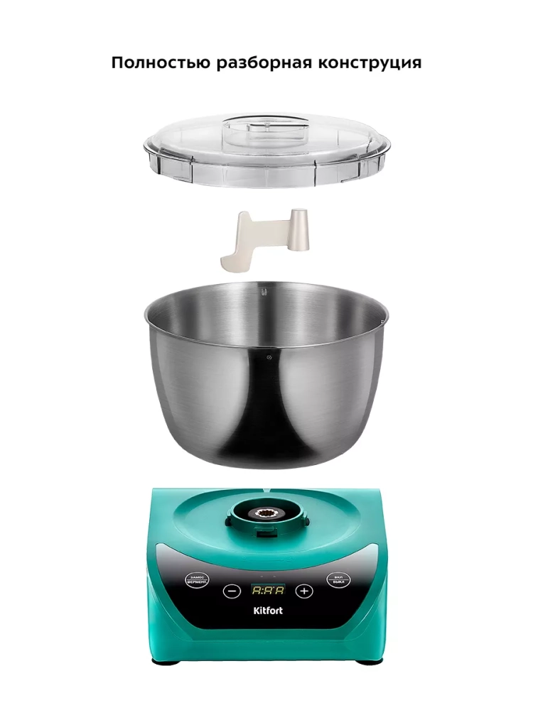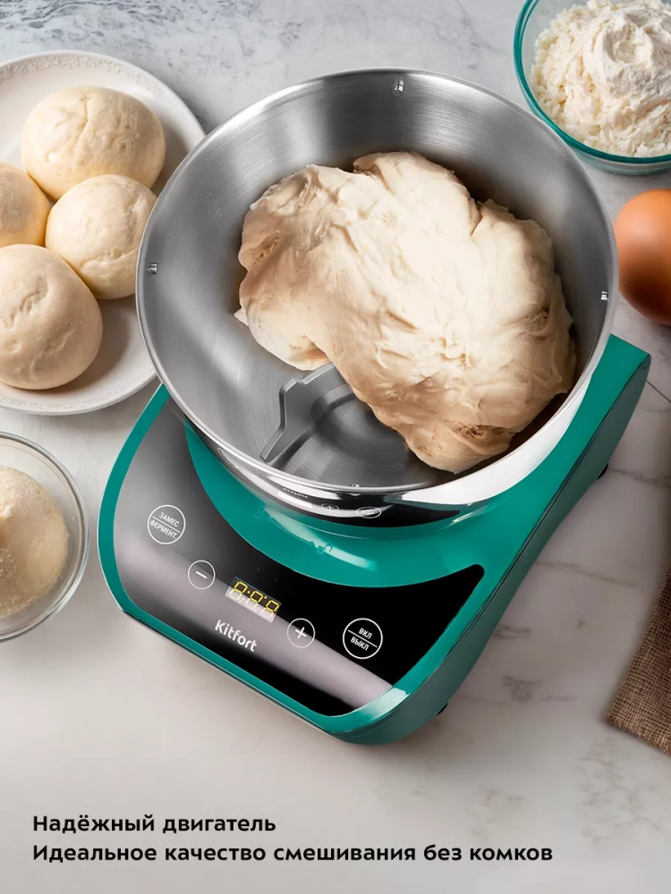 Тестомесильная машин Kitfort КТ-3476 поможет вам замесить крутое тесто для пельменей и пирогов, слоеное тесто для булочек, а также жидкое тесто для блинов.