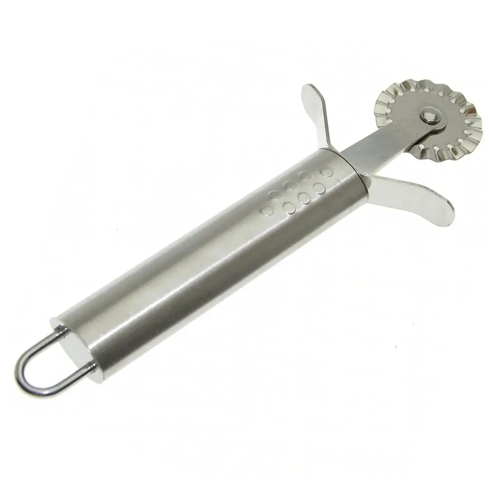 Тесторезка «Лидер» используется для приготовления блюд из теста — пиццы, пельменей, печенья и другой выпечки. Дисковый нож создает фигурный край, который украшает выпечку, пельмени и равиоли. После применения рекомендуется мыть мягкой щеткой с использованием жидких моющих средств. Изготовлено из нержавеющей стали.