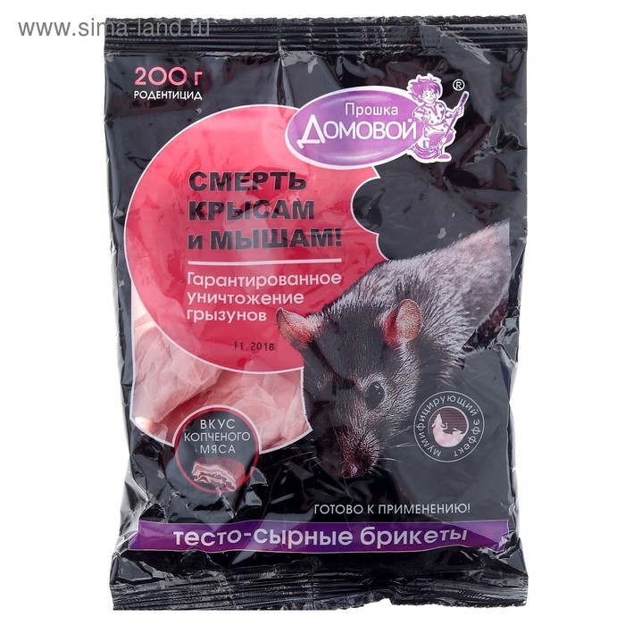 Тестосырный брикет от грызунов Домовой Прошка, со вкусом копченого мяса, 200 г