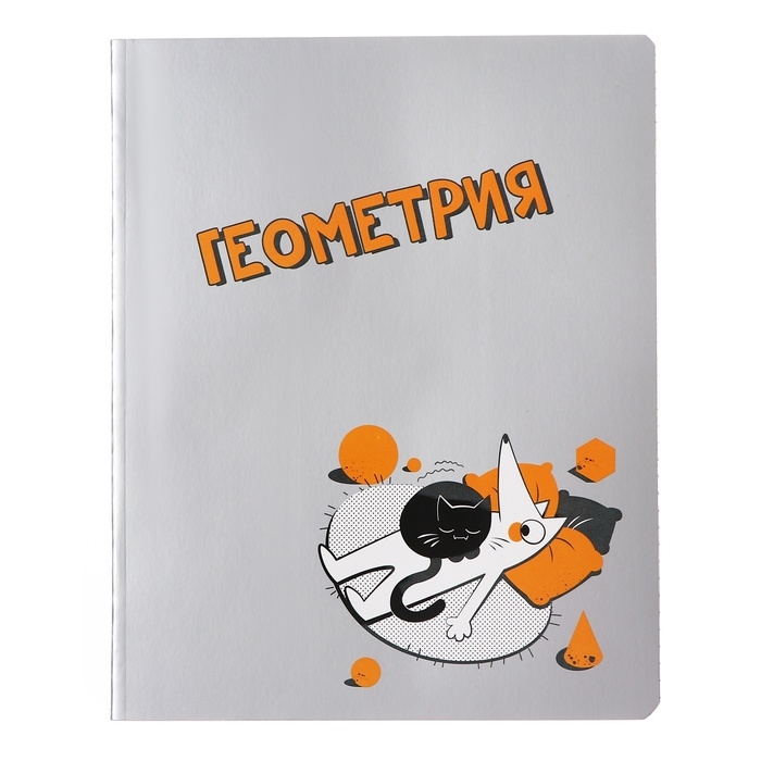 Тетрадь предметная "Пёс и Кот" 48 листов в клетку "Геометрия", обложка мелованный картон, металлизированная краска, ВД-лак, блок офсет