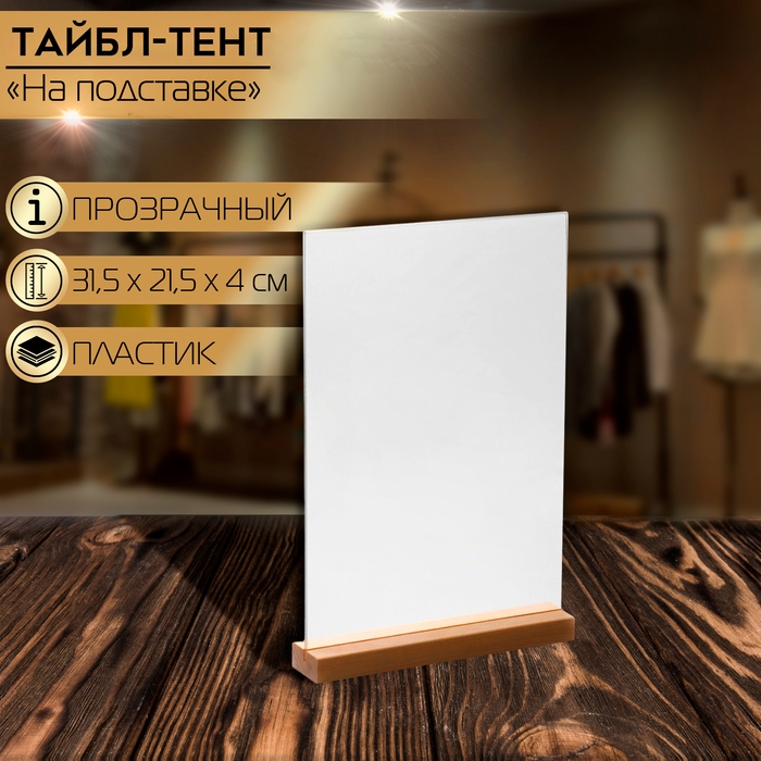 Тейбл-тент А4, оргстекло 2 мм, на деревянной подставке