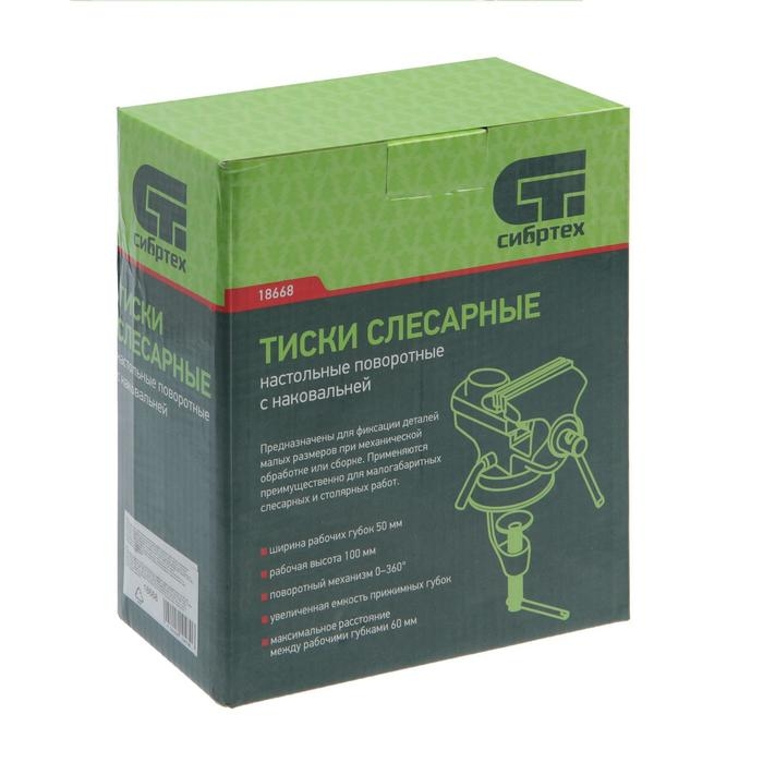 Тиски слесарные "СИБРТЕХ", настольные, поворотные, ширина рабочих губок 50 мм, наковальня