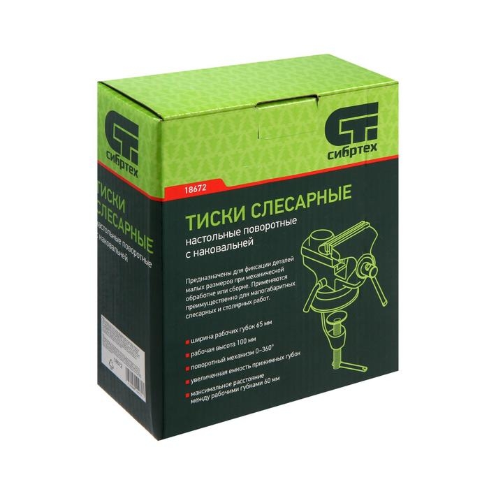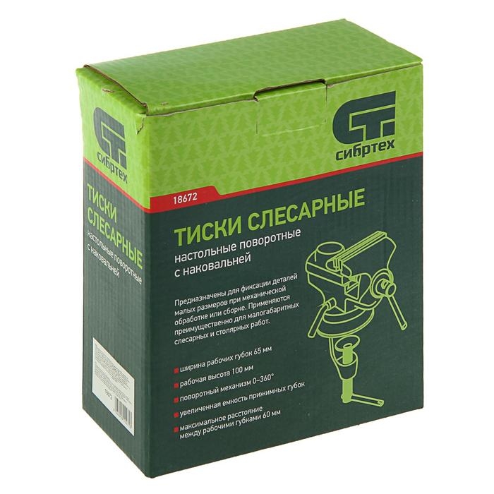 Тиски слесарные "СИБРТЕХ", настольные, поворотные, ширина рабочих губок 65 мм, наковальня