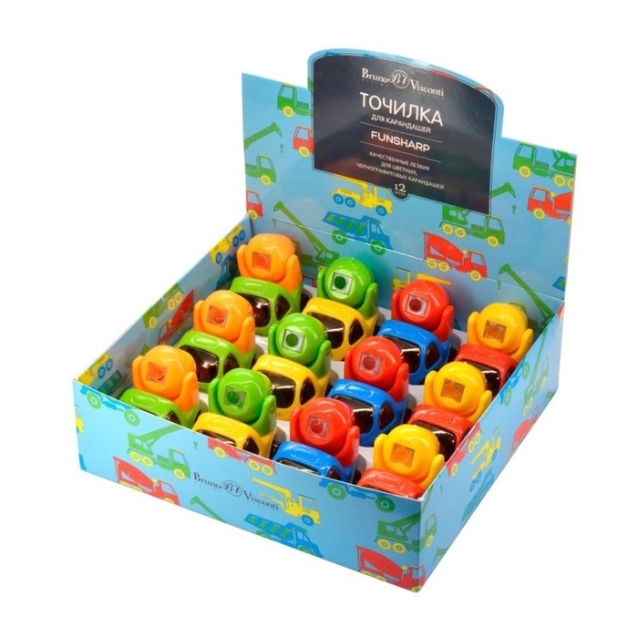 Точилка 1 отверстие с контейнером Funshart "Бетономешалка", МИКС