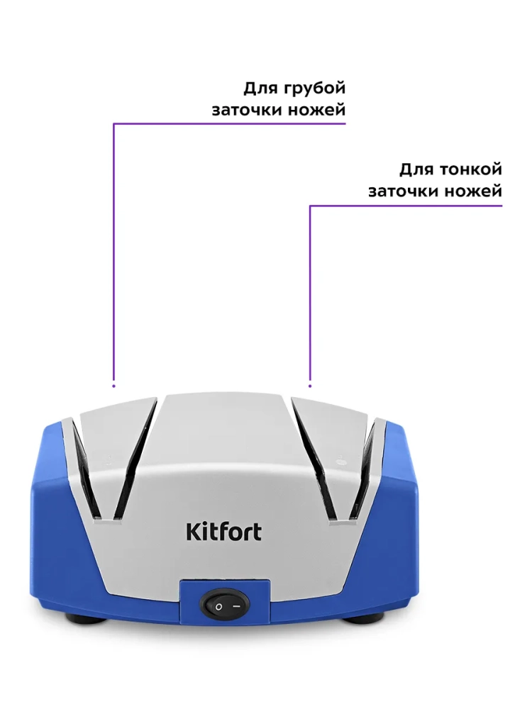 Электроточилка для ножей Kitfort КТ-6391 поможет быстро и безопасно заточить ножи с гладкими стальными лезвиями.