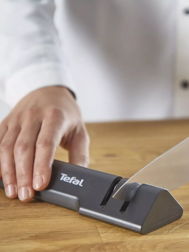Эта компактная точилка занимает минимум места на кухне и легко хранится даже в небольших пространствах. Подходит для ножей из нержавеющей стали, что делает ее универсальным аксессуаром для ухода за кухонными инструментами. Использование точилки тефаль позволит продлить срок службы ножей и сохранить их функциональность, превращая каждое нарезание в легкий и точный процесс. С точилкой Tefal ваши ножи всегда будут оставаться острыми и готовыми к использованию, а уход за ними станет простым и удобным!