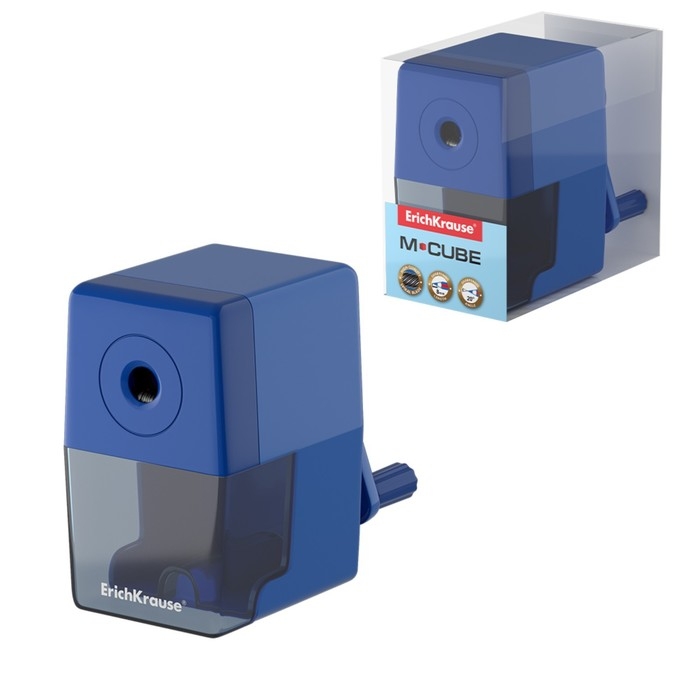 Точилка механическая 1 отверстие ErichKrause M-Cube, с контейнером, диаметр 8 мм с силиконовым фиксатором для заточки карандашей, синяя