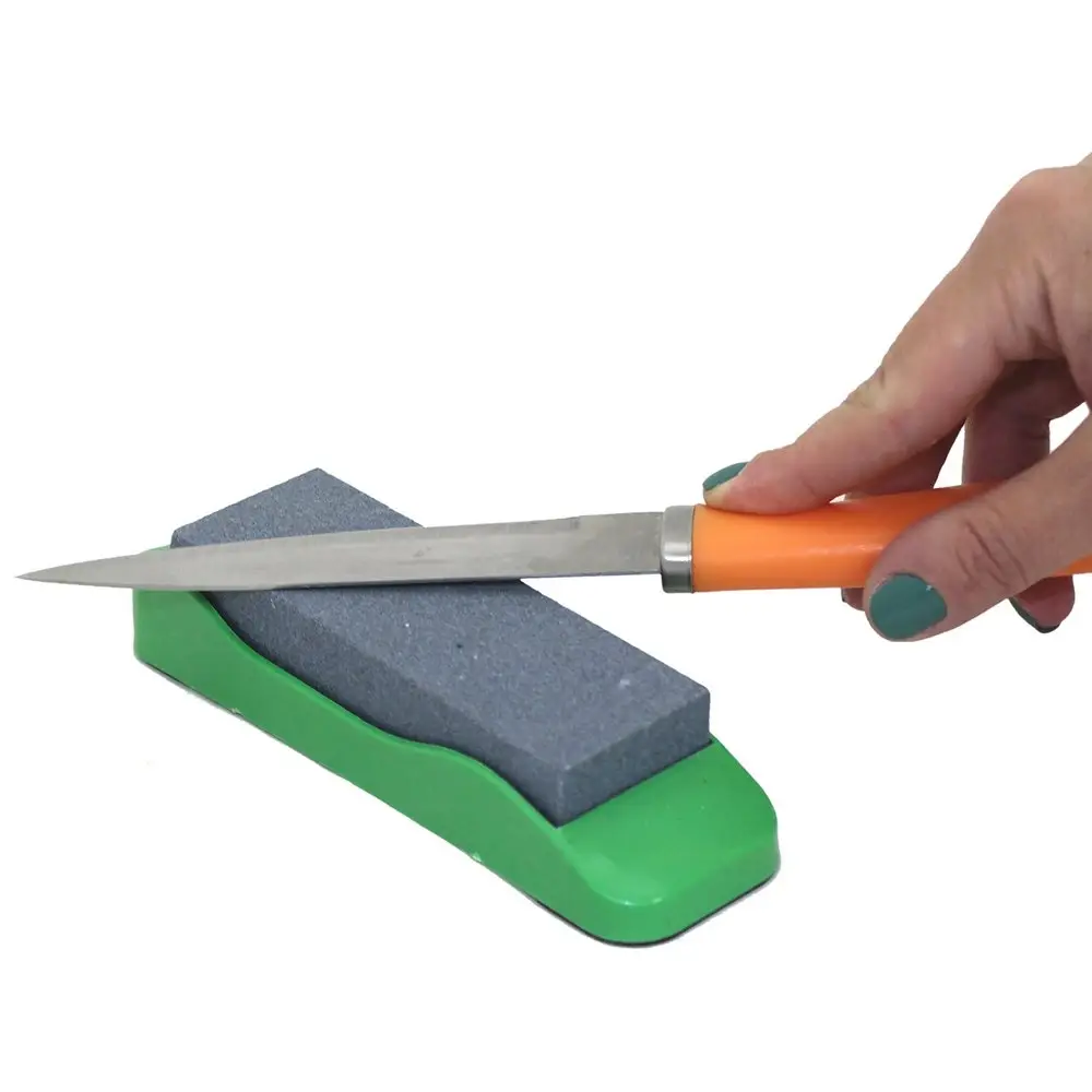 Точильный брусок из камня подойдет для заточки лезвий ножей и ножниц – это универсальное приспособление, которое должно быть на каждой кухне. Ножеточка имеет удобный эргономичный дизайн, для придания устойчивости помещена в пластмассовый корпус.