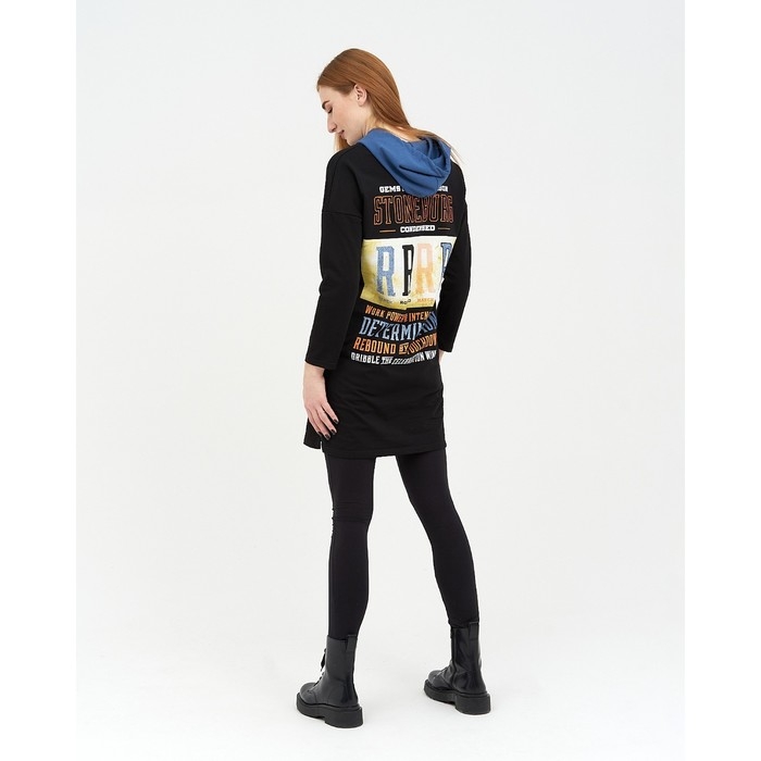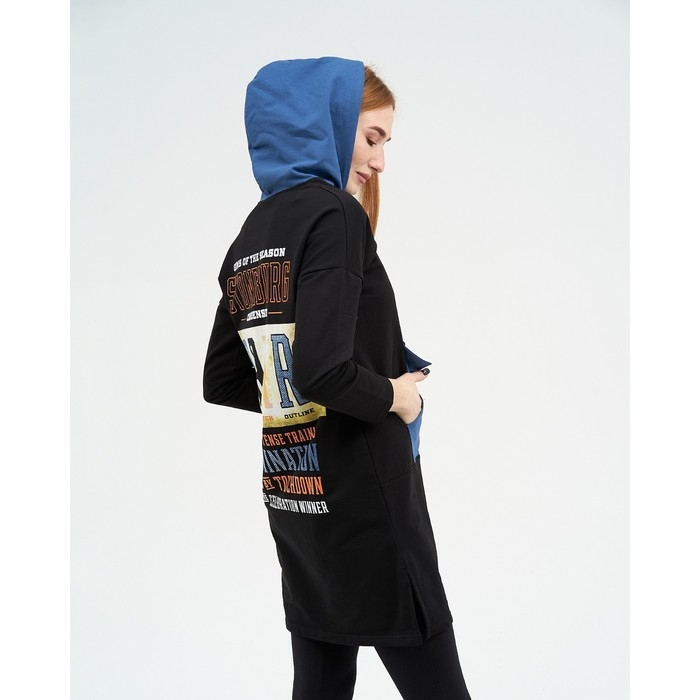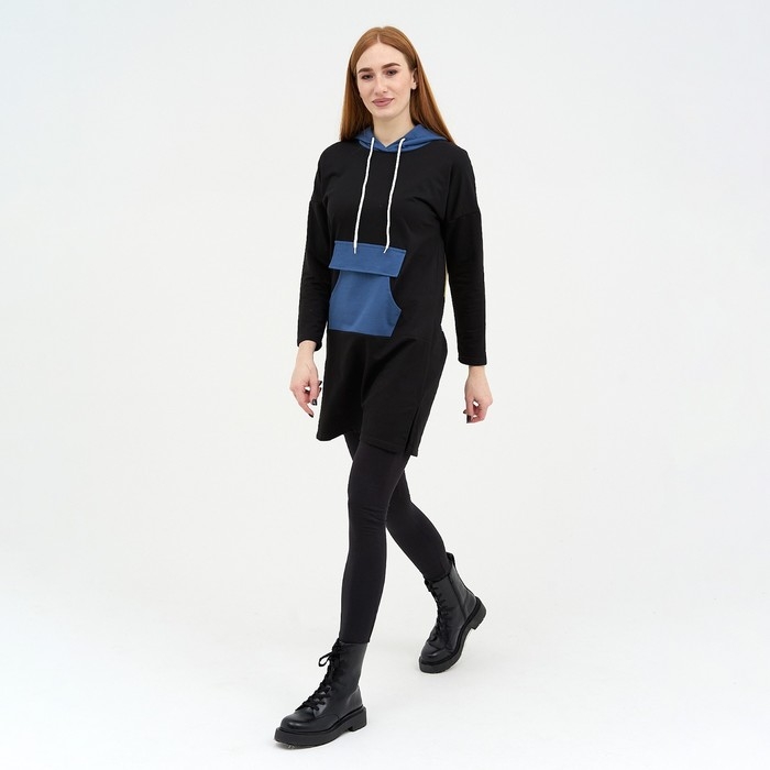 Толстовка женская, цвет чёрный/индиго размер 46