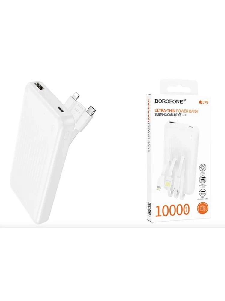 Тонкий повербанк с проводами 10000 BJ79 белый