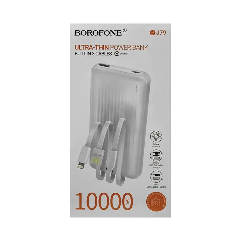 Borofone 10000 BJ79 – это незаменимый аксессуар для тех, кто часто находится в пути и нуждается в надёжном источнике энергии для своего смартфона. Благодаря своей компактности и универсальности, этот повербанк станет вашим верным помощником в любой ситуации. Идеальное решение для подзарядки в любом месте Borofone 10000 BJ79 – это ультратонкий внешний аккумулятор, который станет вашим надежным спутником в ситуациях, когда необходима срочная подзарядка смартфона. Благодаря компактным размерам и лёгкому весу, этот повербанк легко помещается в кармане или сумке, всегда оставаясь под рукой.