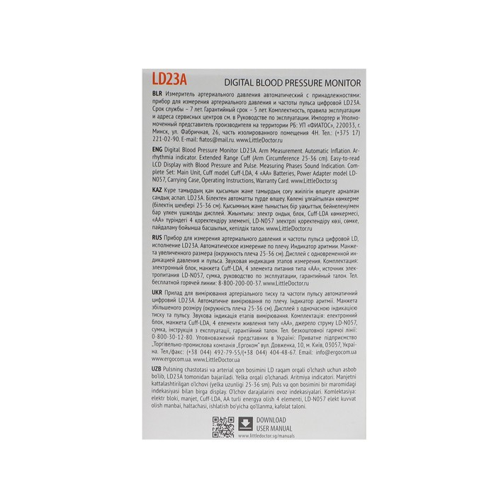 Тонометр Little Doctor LD-23А, автоматический, большая манжета 25-36 см, 4хАА, с адаптером