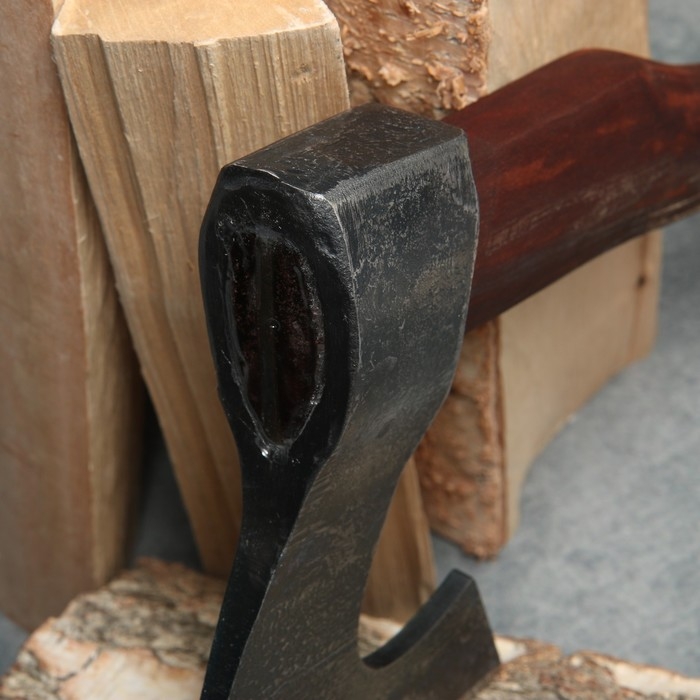 Топор изготовлен из кованной стали 60Г, благодаря которой инструмент обладает: повышенной прочностью, сопротивлению изнашивания, стойкостью на изгиб и излом, устойчивостью к изломам и скручиванию металла. Лезвие закалено до характерного звона и заточено до необходимой остроты.