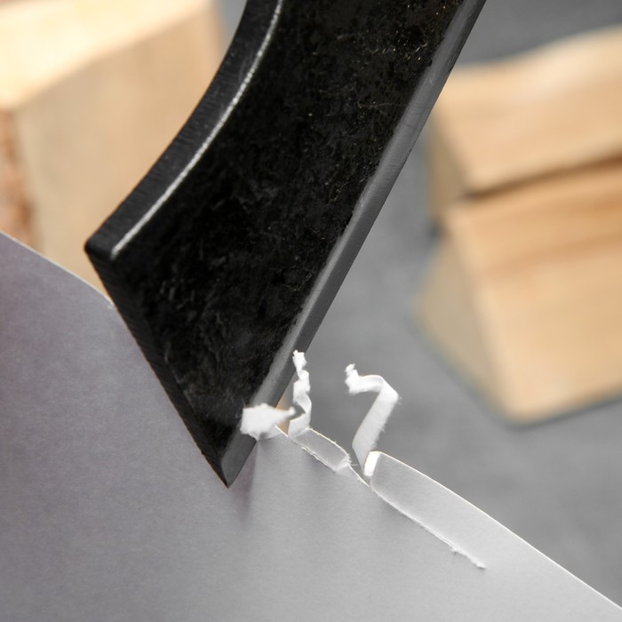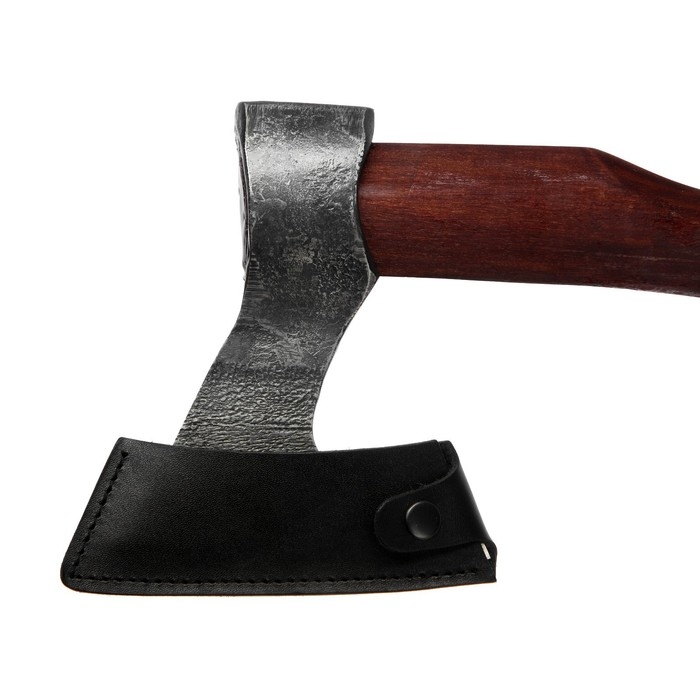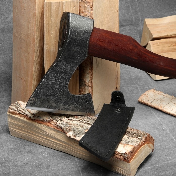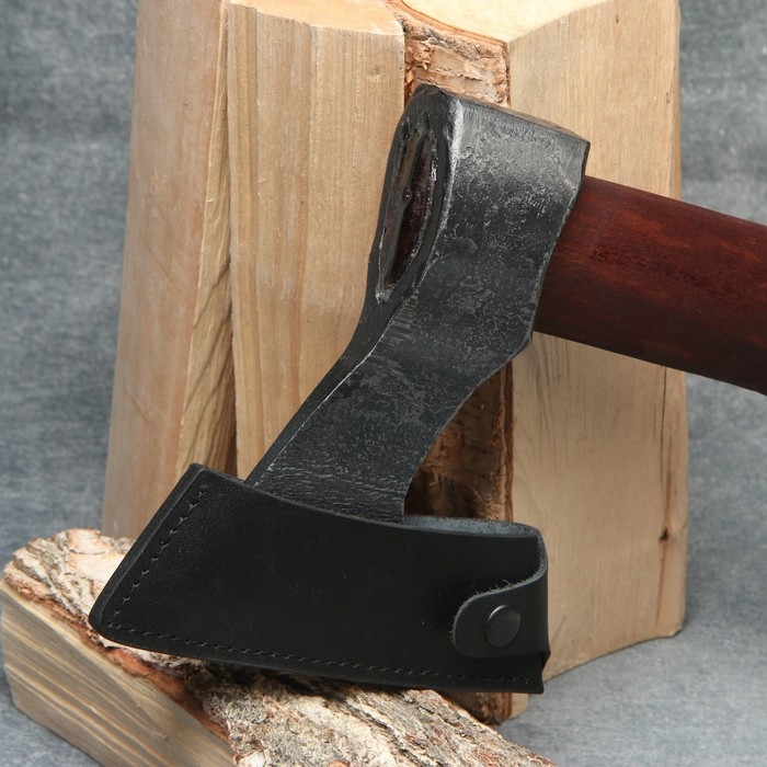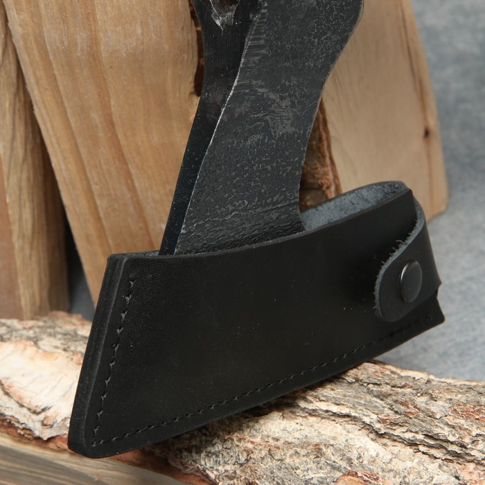В комплект идёт защитный чехол из эко кожи толщиной 3 мм с фиксацией для лезвия, благодаря которому топор будет безопасен в хранении и транспортировке.
