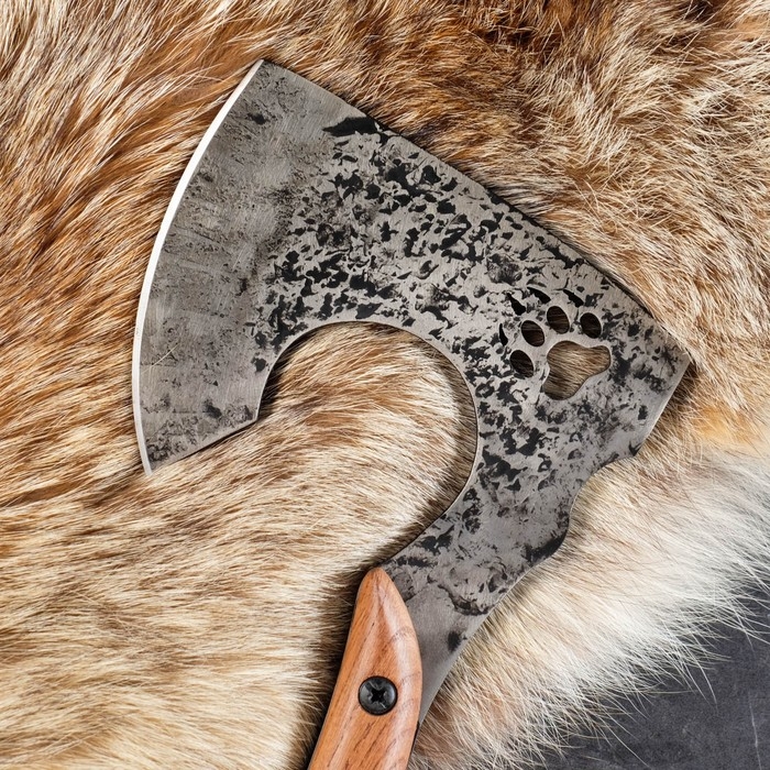 Топорик изготовлен из кованой стали 45Г, обладающей высоким показетелем прочности и легко поддающейся обработке.