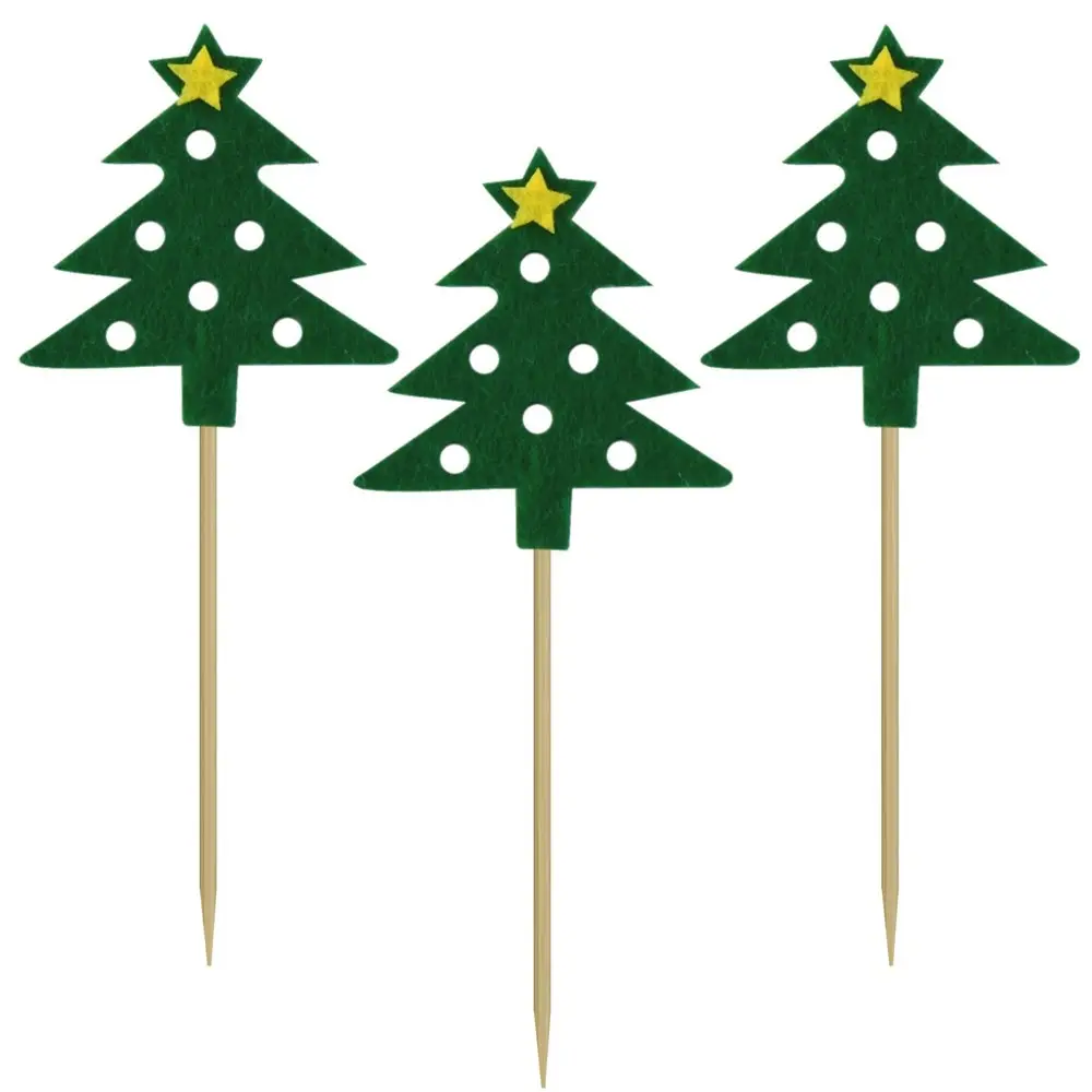 Придайте индивидуальности своему празднику и удивите ваших родных и близких. Топпером в форме елочки можно украсить торт, кекс, маффин или другую выпечку. Такой топпер добавит оригинальности и красоты в любой десерт и станет настоящим украшением праздника. Топпер можно использовать как шпажку при сервировке стола многослойными мини-бутербродами (канапе) из овощей, фруктов, ягод, сыров и мясных продуктов. Выбирайте любимые ингредиенты для приготовления порционных блюд, насаживайте их на топпер и готовьте с удовольствием! Топперы заменят десертные вилочки на вашем праздничном столе, а оригинальный дизайн поднимет настроение гостям. Предназначены для одноразового использования. Изготовлены из дерева, декор из полиэстра. Общая длина 10 см.