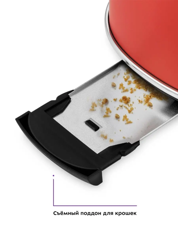 Снизу расположен выдвижной поддон для крошек, поэтому чистить тостер просто и удобно.