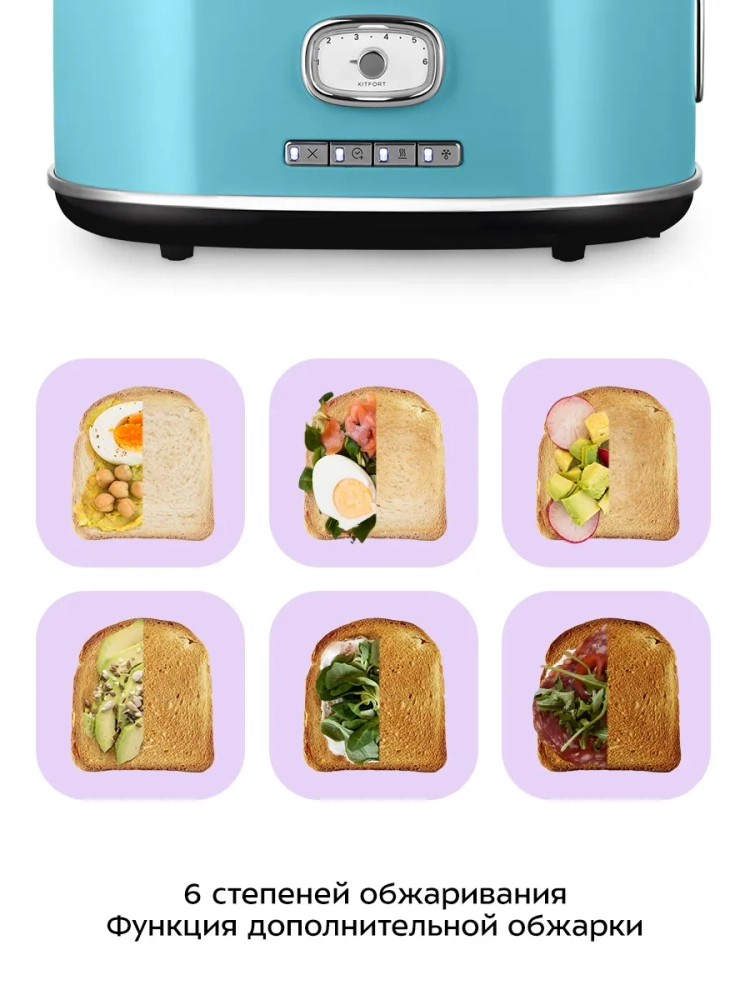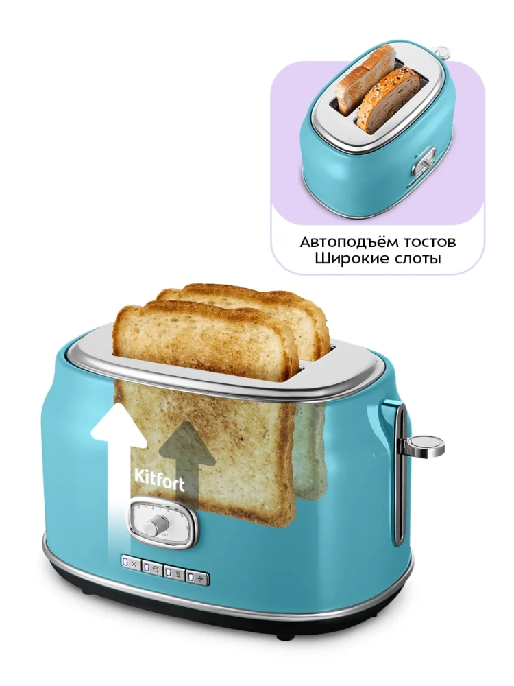 Электрический тостер Kitfort КТ-6455 создан для тех, кто любит полакомиться ароматным и хрустящим поджаренным хлебом. Особый вкус и цвет корочки тостов получаются такими благодаря карамелизации сахара, содержащегося в муке, при инфракрасном нагреве в процессе приготовления.