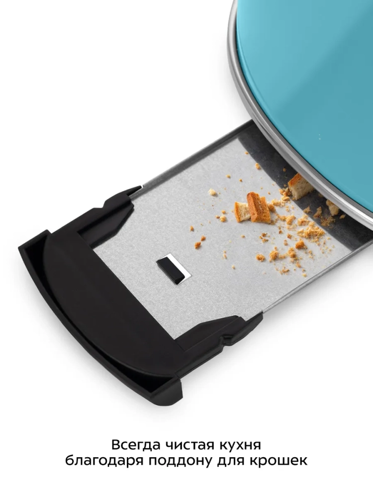 Съемный поддон для крошек позволяет легко и удобно очистить тостер от хлебных крошек.
