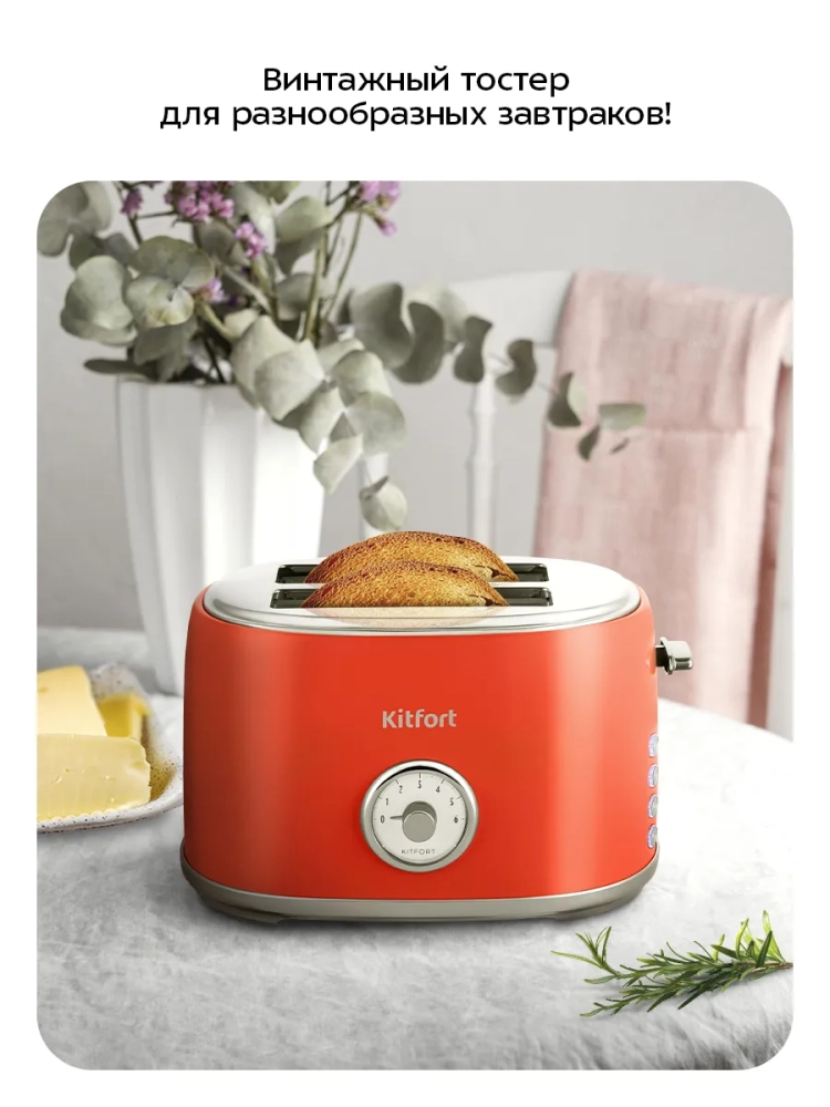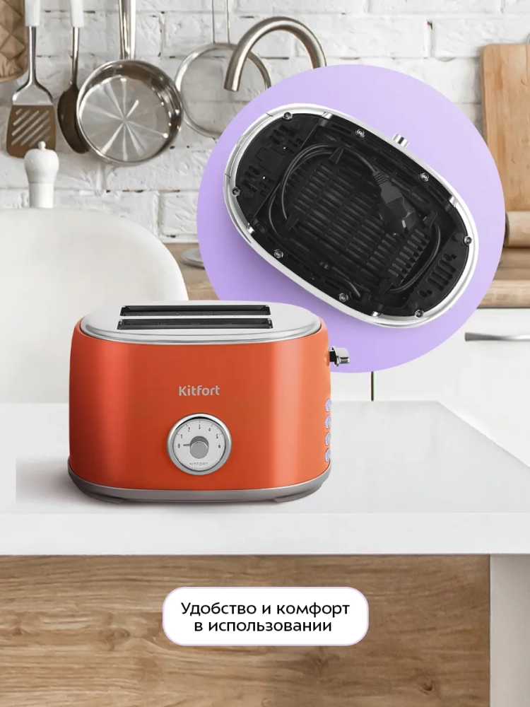 Электрический тостер Kitfort КТ-6456 создан для тех, кто любит полакомиться ароматным и хрустящим поджаренным хлебом. Особый вкус и цвет корочки тостов получаются такими благодаря карамелизации сахара, содержащегося в муке, при инфракрасном нагреве в процессе приготовления.