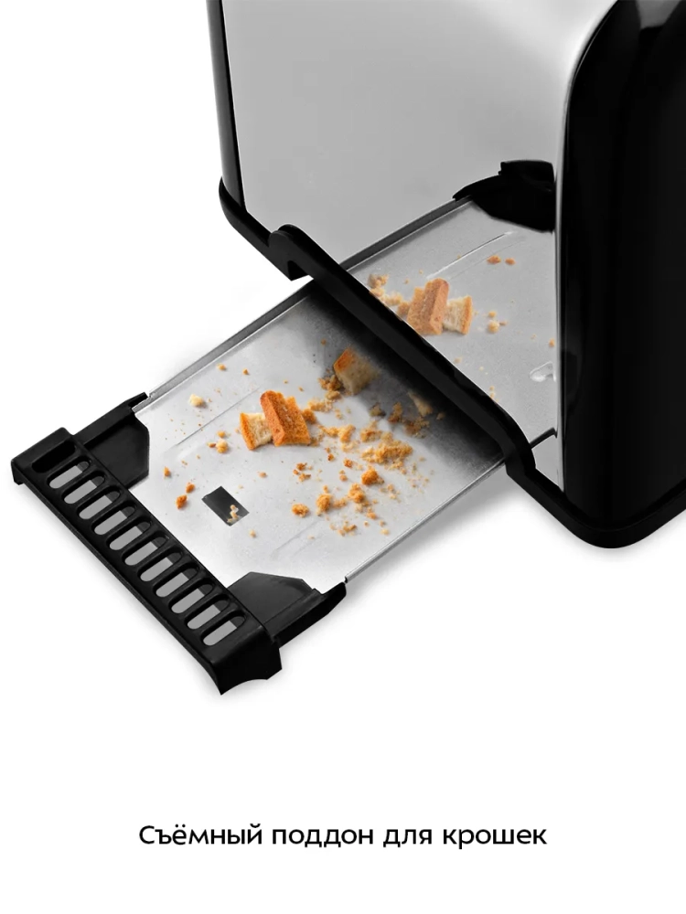 Съемный поддон для крошек позволяет легко и удобно очистить тостер от хлебных крошек.